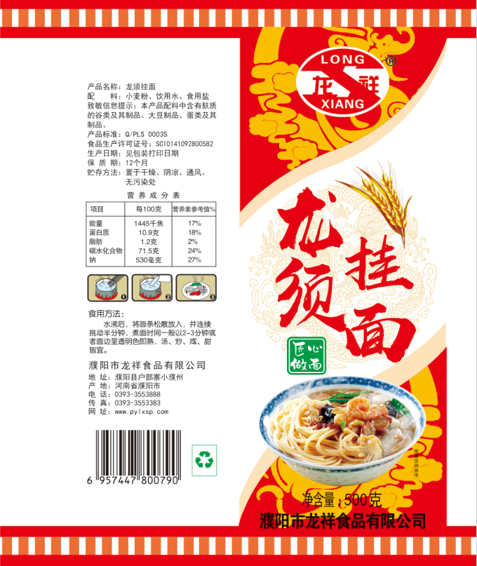 濮陽市龍祥食品有限公司位于河南省濮陽縣戶部寨鎮(zhèn)小濮州,始建于1994年,前期投資200萬元,經(jīng)過幾年的努力,大力開發(fā)市場,由于市場的需求量急劇上升,出現(xiàn)供不應(yīng)求,于2004年擴(kuò)建,建成一座新型的現(xiàn)代化面粉加工企業(yè),并擁有全國先進(jìn)全自動生產(chǎn)設(shè)備一套,產(chǎn)量由以前的100噸/天,提高到現(xiàn)在400噸/天。 2012年再次擴(kuò)大規(guī)模申請為濮陽市龍祥食品有限公司,注冊資金500萬元。2012年又投資800萬元新建掛面生產(chǎn)線一條,日產(chǎn)掛面50噸。龍祥食品有限公司現(xiàn)有職工120余人,總工程師1人,專業(yè)技術(shù)人員10人,經(jīng)濟(jì)師1人,會計師1人,銷售人員2人,優(yōu)秀專業(yè)人員20余人。 龍祥公司自創(chuàng)建以來,社會效益十分可觀。公司一直以“今天的質(zhì)量,明天的市場”為信念,“一切為了客戶需求,竭誠追求完美品質(zhì)”為企業(yè)宗旨,走專業(yè)化經(jīng)營和職業(yè)化管理的路子。